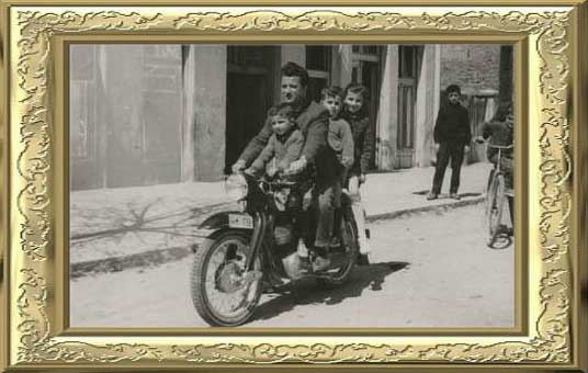 My grandfather LJUPCO with his 3 children : Dimce ( my uncle ) , in the front Dusko ( my uncle) , first on the back Liljana ( my mother ) , second on the back
