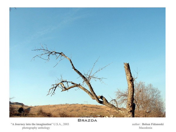 This is a photo I have taken of an old tree at my Country House in Brazda village just outside of the city of Skopje. I took this photograph in the midsummer of 2002, and few months later I submitted it on line for an amateur competition at www.picture.com. Suprisingly few months later I got an email stating that my photograph was chosen to be one of the hundred photos included in a new book named "A journey into the imagination", and will be printed and sold in the USA in 2003. I was thrilled and happy. |